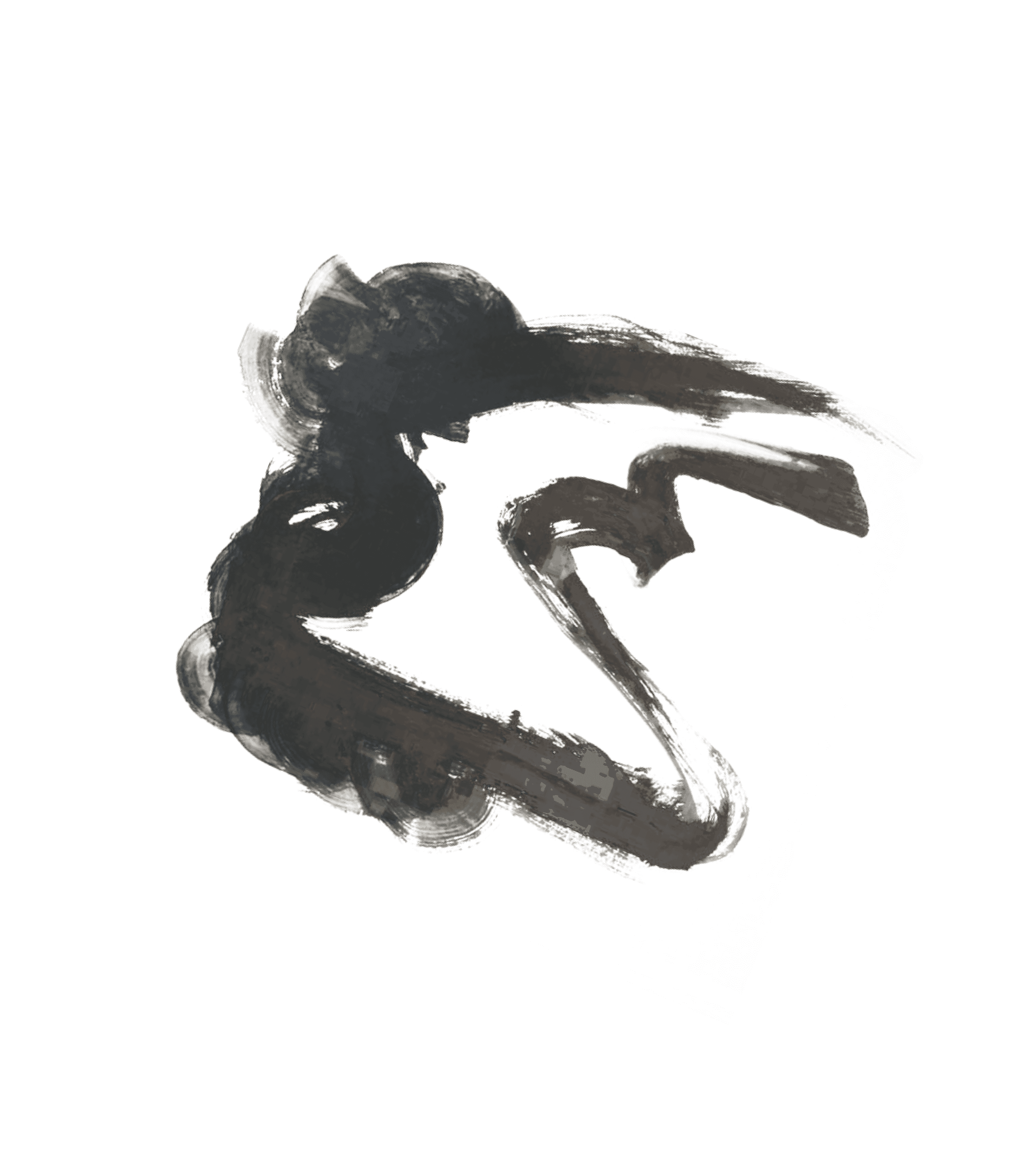 Hecho con pincel inventado y desechado una vez terminada la obra. Realizada con acrílico negro y toques de color en tinta china.