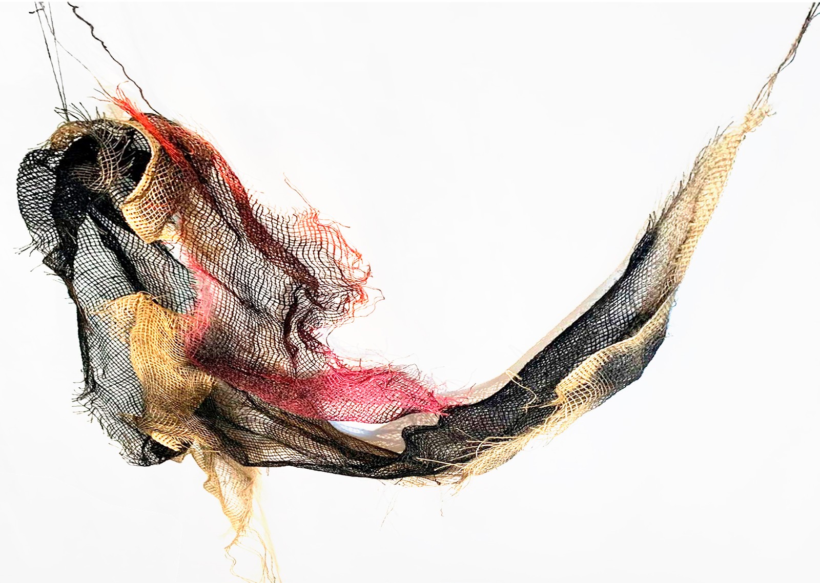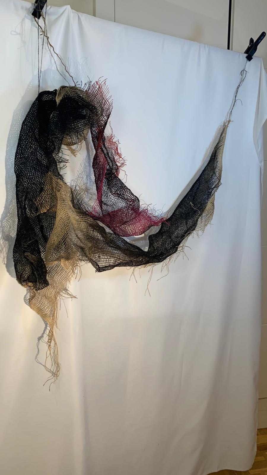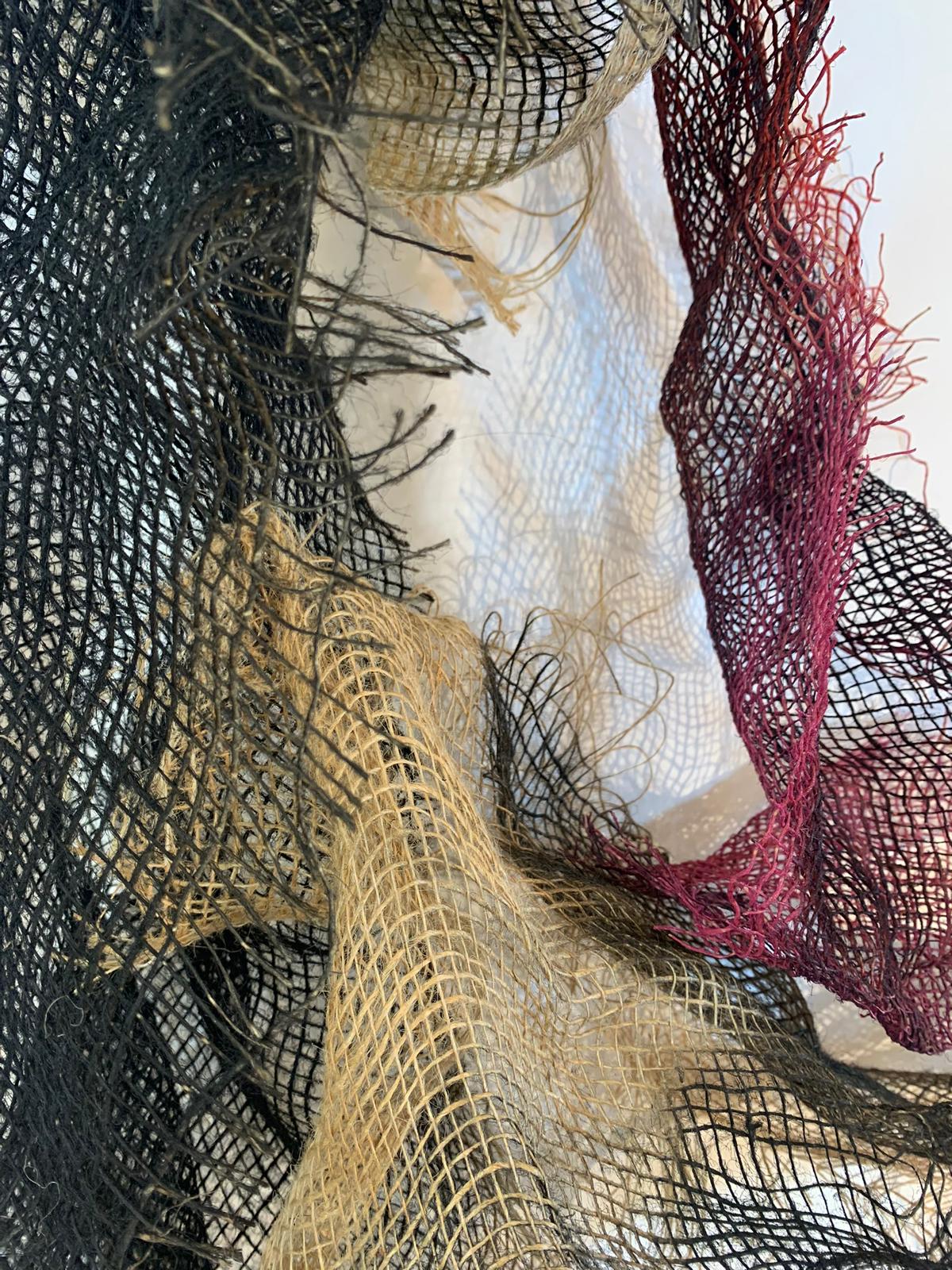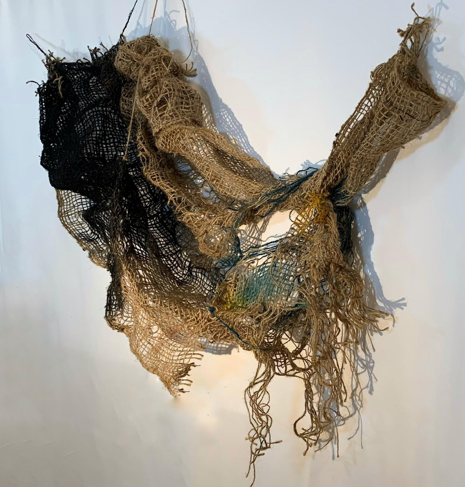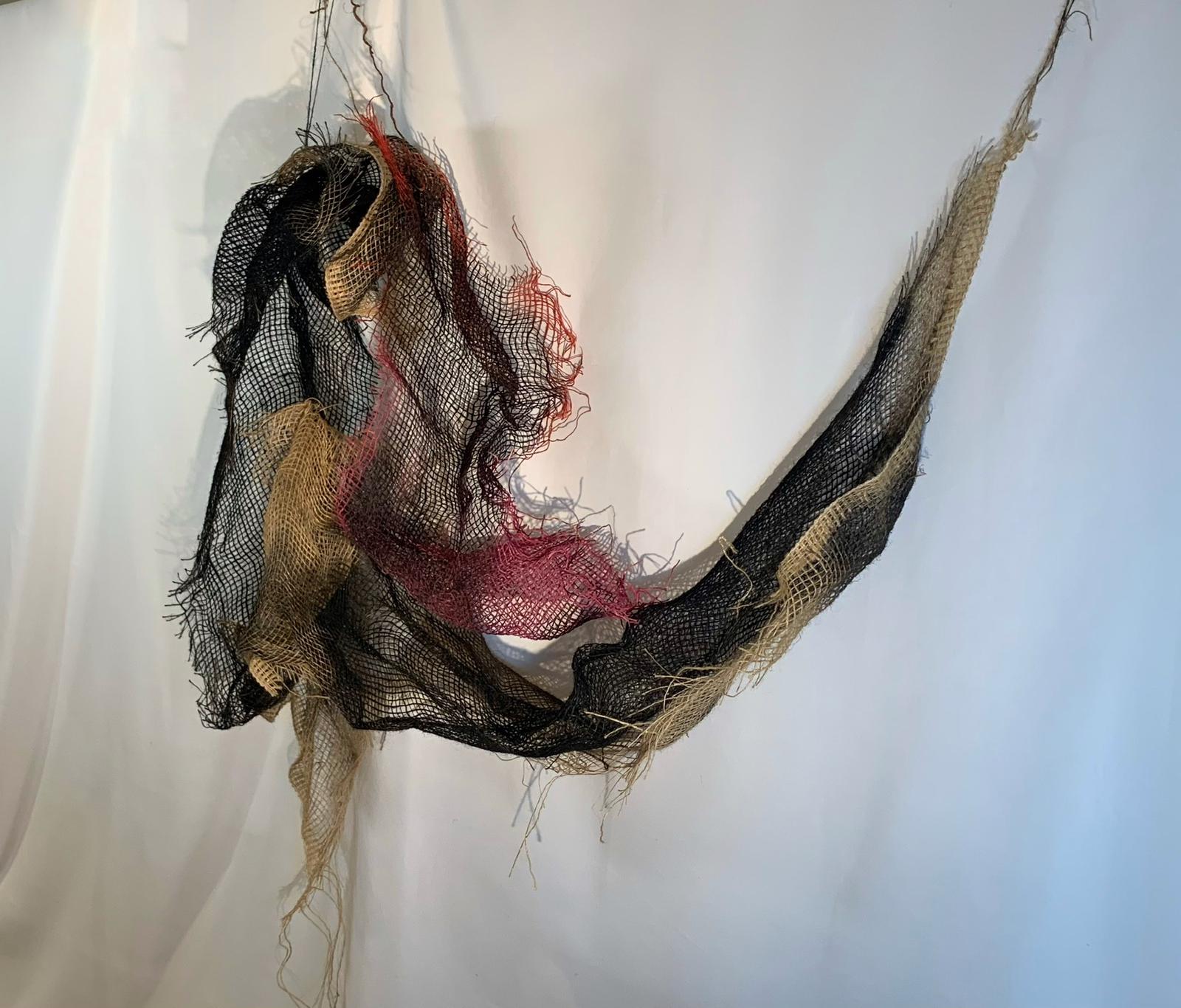 La serie “Marañas” son unas obras hechas con yutes de varias texturas que he querido hacer sin endurecer, a diferencia del resto de mis otras esculturas.