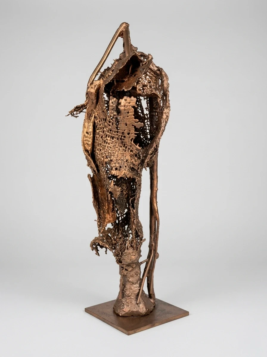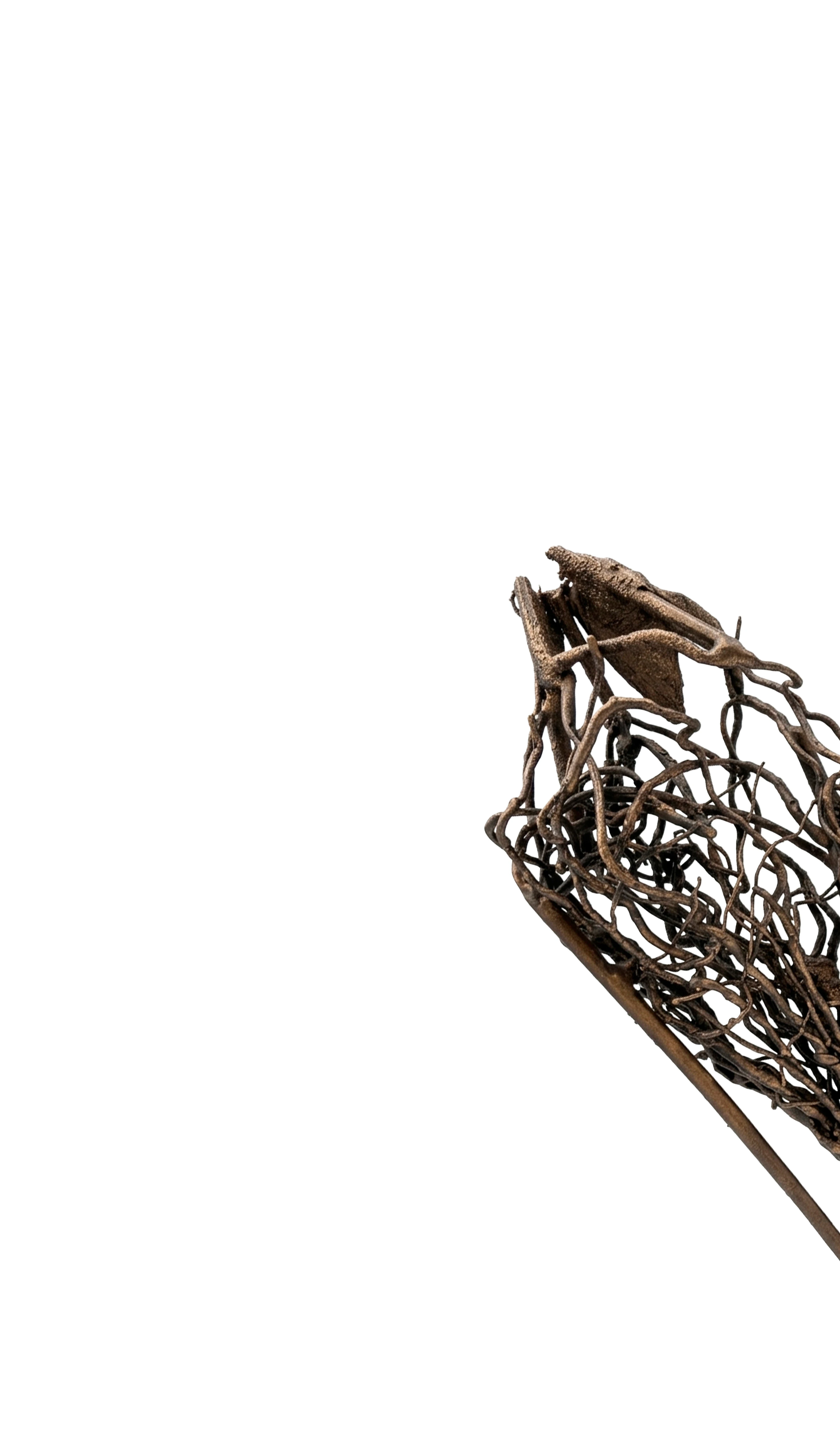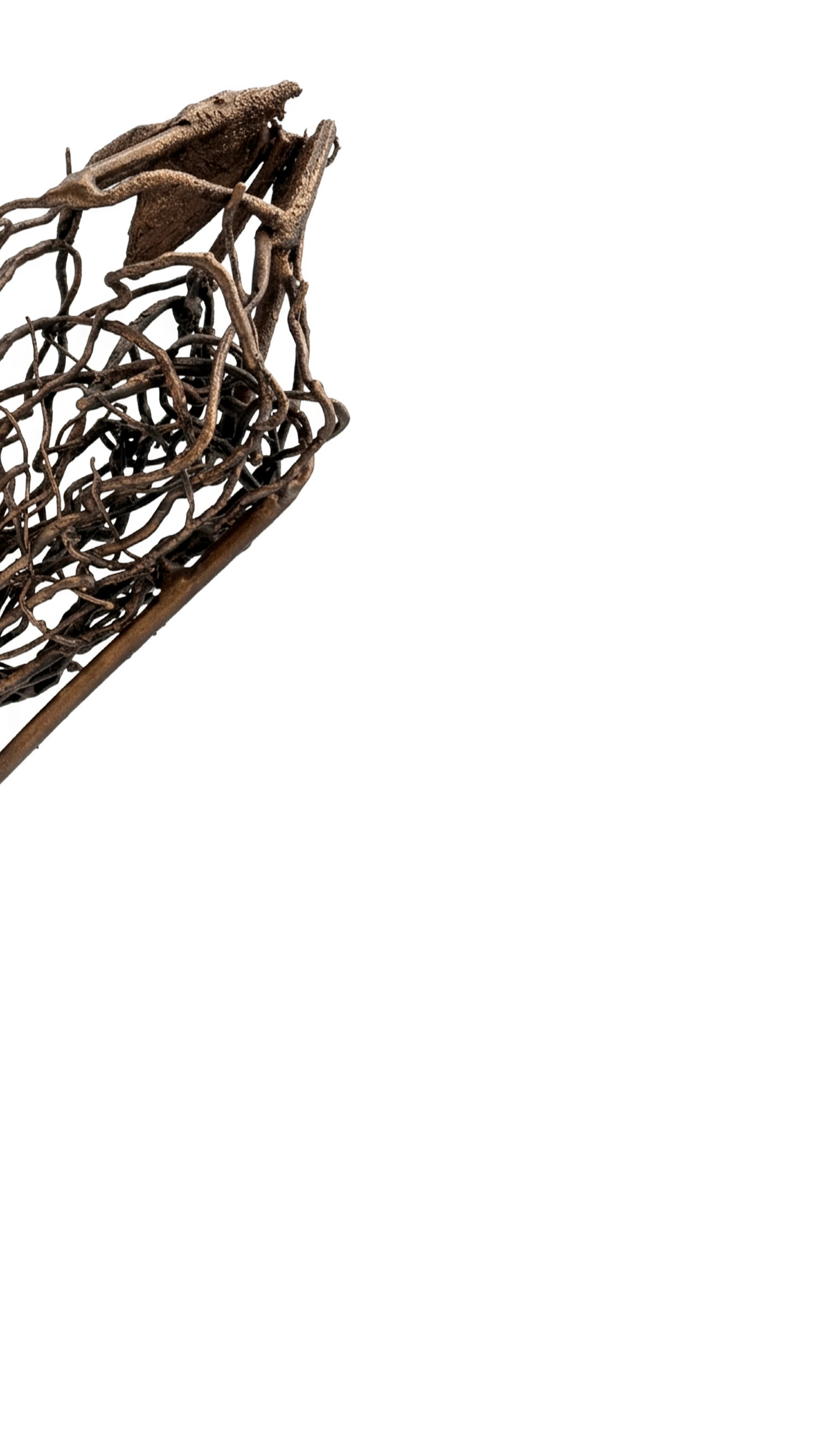 Yutes transformados en bronce macizo mediante fundición. La fibra natural se convierte en metal sólido, preservando la textura y esencia original en piezas únicas.
