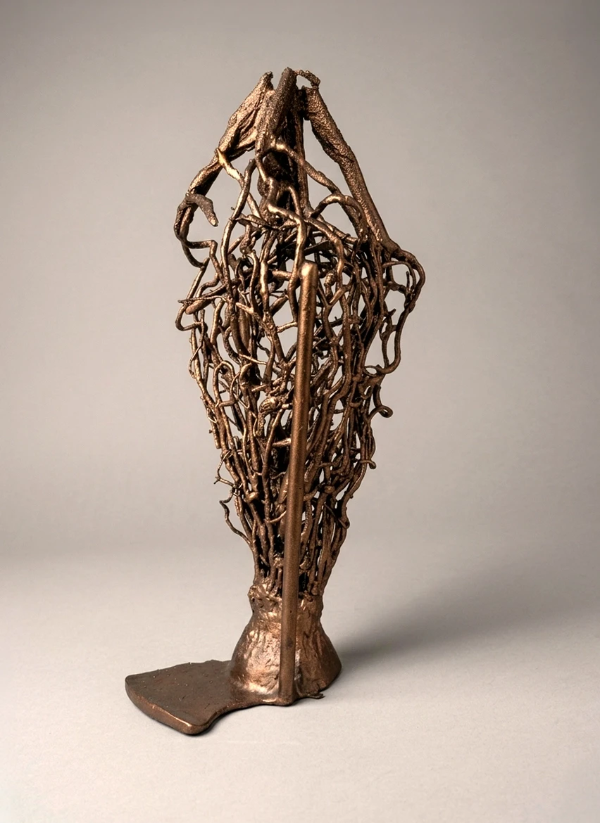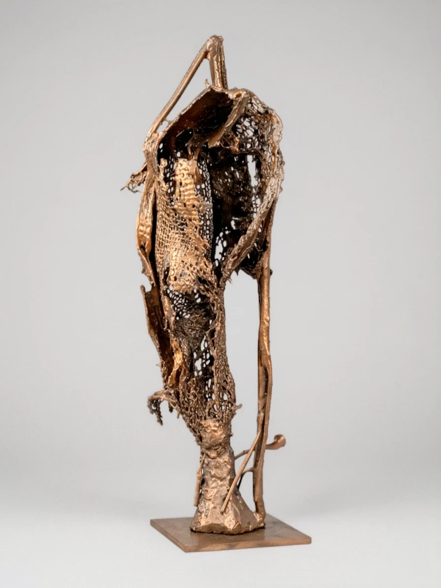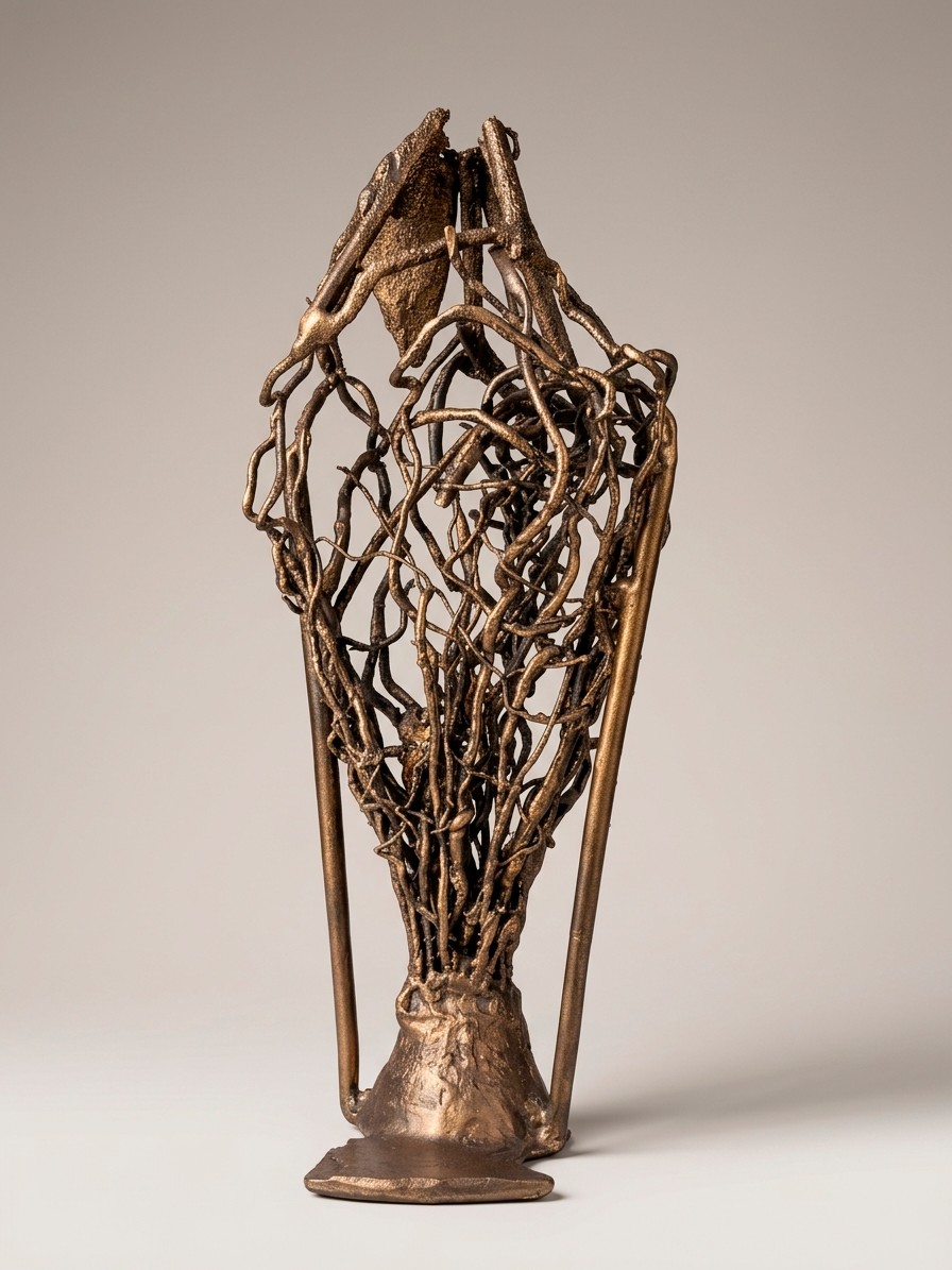 Yutes transformados en bronce macizo mediante fundición. La fibra natural se convierte en metal sólido, preservando la textura y esencia original en piezas únicas.